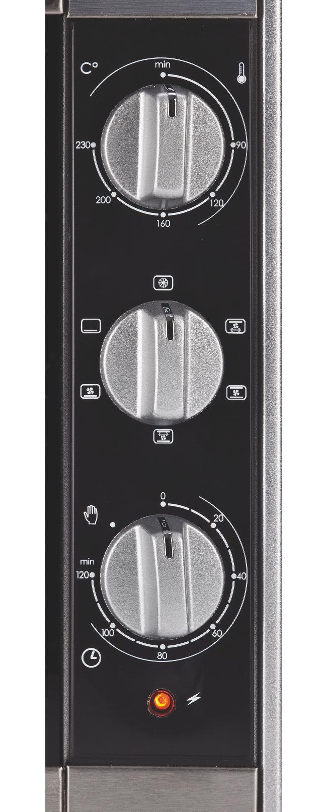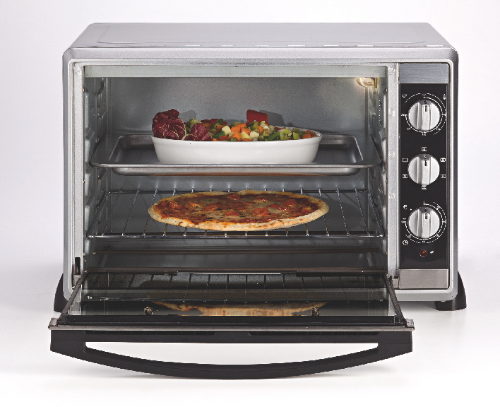 این دستگاه بزرگترین اندازه فر رومیزی است که دارای حجم 52 لیتر و توان W 2000 می باشد! مجهز به سیخ جوجه گردان جهت بریان نمودن مرغ. این فر دارای 6 عملکرد متفاوت پخت می باشد. مجهز به کلیه وسائل جانبی ضروری می باشد (کباب پز، سینی، دستگیره). زنگ پایان زمان پخت را اعلام می نماید و حداکثر درجه پخت 250 درجه سانتیگراد می باشد. همچنین دارای چراغ برای بهتر دیدن داخل فر هنگام پخت می باشد.