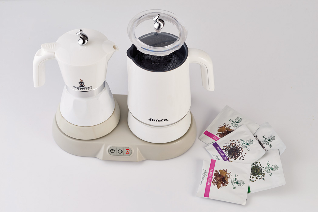 قهوه ساز 2 قلو دارای کتری برقی، شیرجوش و اسپرسوساز